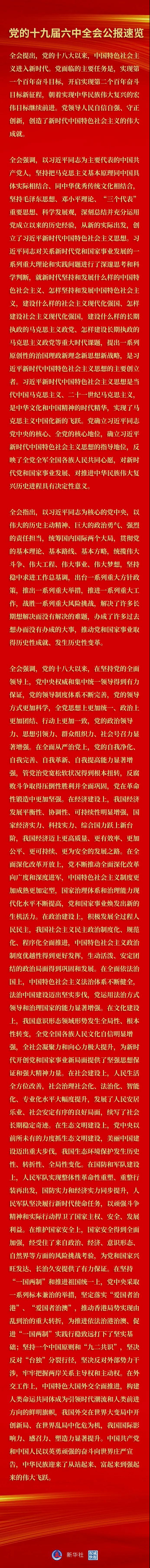 黨的十九屆六中全會(huì)公報(bào)速覽