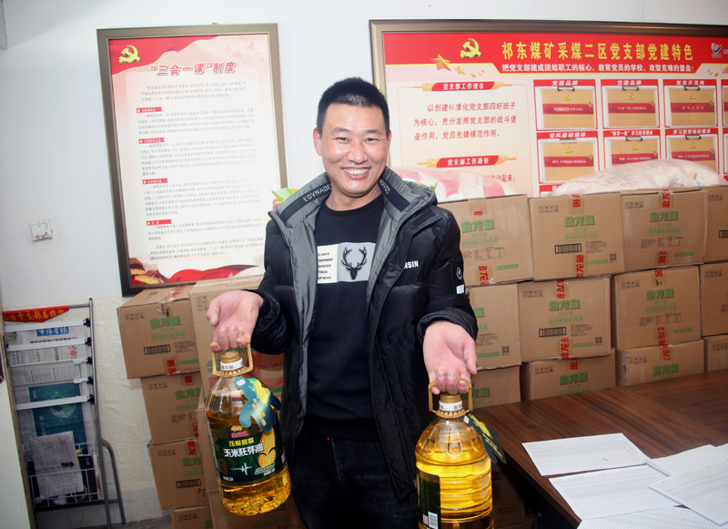 “米面油發(fā)的真及時,過年家里不用買了!職工們都紛紛點贊?!痹摰V采煤二區(qū)職工唐永恒告訴筆者。