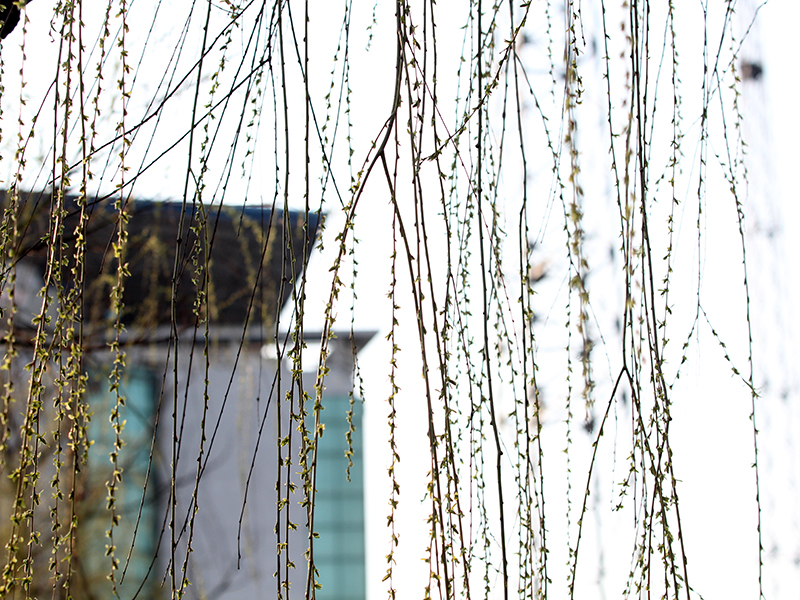 暖暖春風(fēng)撫柳而來,攬得生靈陶醉。初春之際,不如趁復(fù)蘇的預(yù)備期先一步尋芳。走過籃球場(chǎng),便是任樓礦的天然氧吧——怡和園了。走進(jìn)怡和園,草地上的小草正努力拱開厚厚的棉被,樹上蔥蔥,仿佛一切都在迎接著春天的到來。半年前,剛到任樓礦那天,我們同批入職的大學(xué)生結(jié)伴秋游了怡和園,八仙池邊的柳枝綠得亮眼,現(xiàn)如今綠絳成了金絲,煥發(fā)著新芽,依舊垂在岸邊。只不過相較那時(shí)候的“身份”和心境都大不相同,當(dāng)時(shí)我還說起幼時(shí)頑皮,常將柳條折枝,大把放在書包里,“抽皮去骨”做哨笛吹,早晨學(xué)著鳥叫聲啁啾著蹦蹦跶跶去上學(xué)……