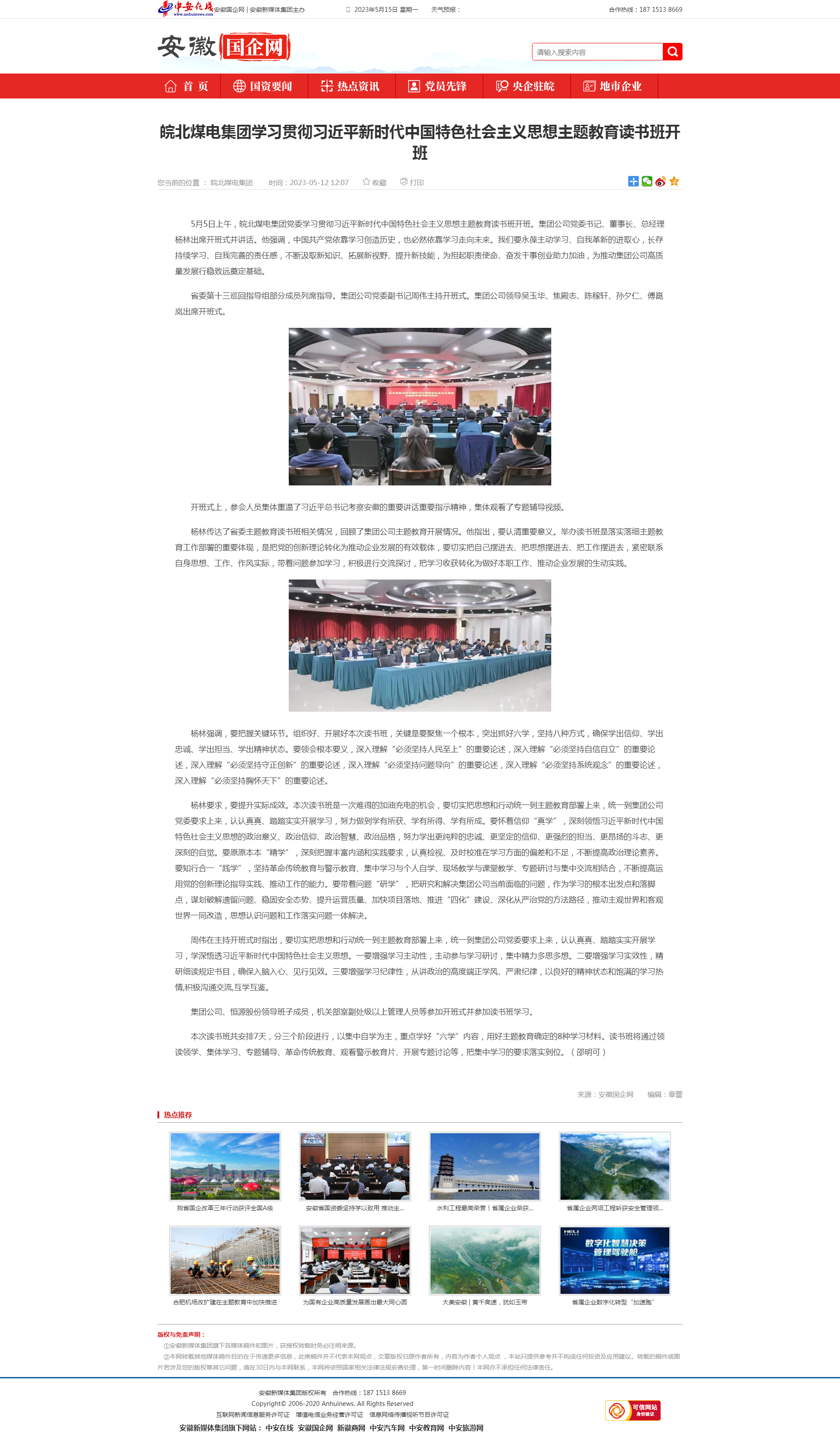 5月12日安徽國(guó)企網(wǎng):皖北煤電集團(tuán)學(xué)習(xí)貫徹習(xí)近平新時(shí)代中國(guó)特色社會(huì)主義思想主題教育讀書班開(kāi)班