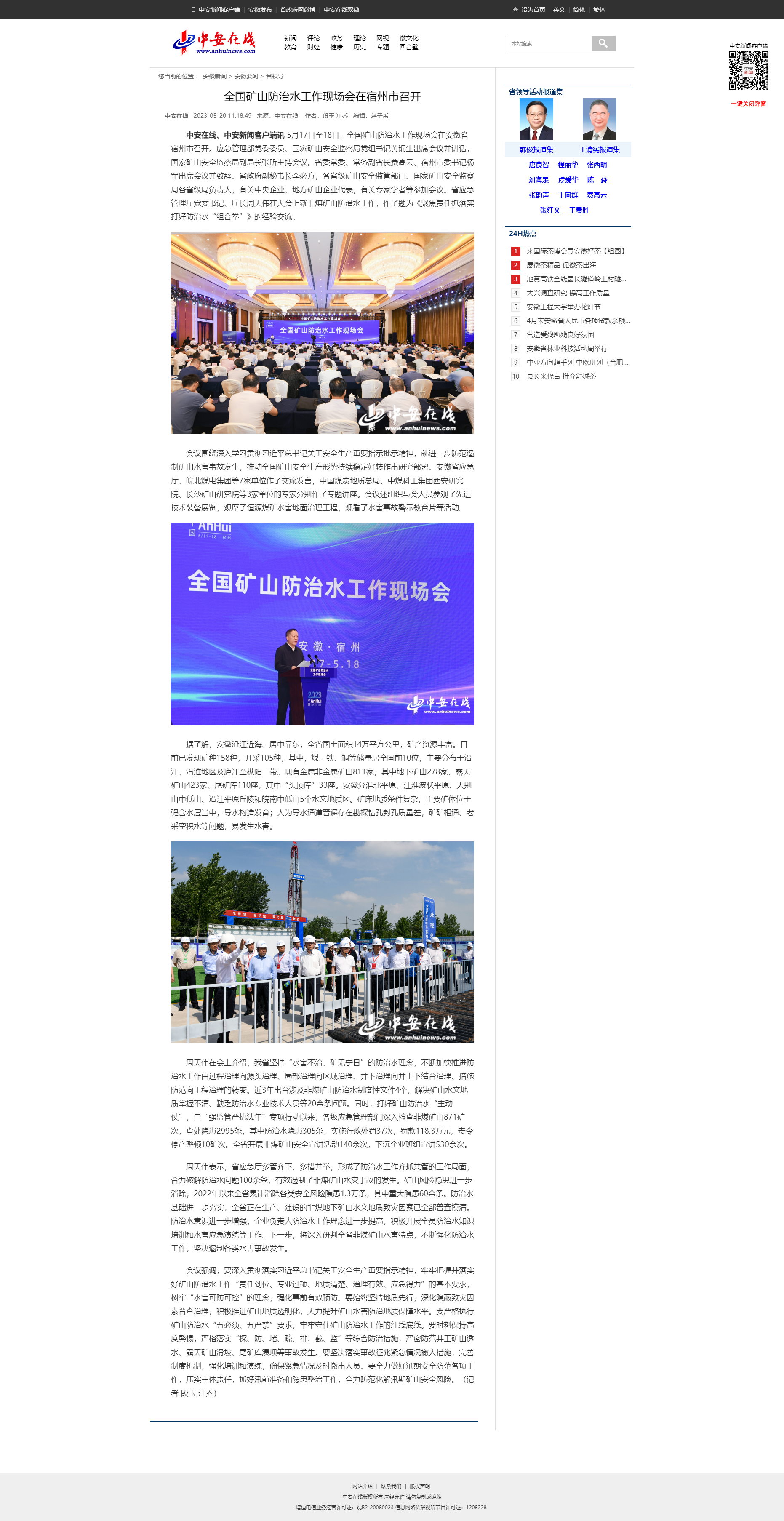 5月20日中安在線:全國礦山防治水工作現(xiàn)場會(huì)在宿州市召開