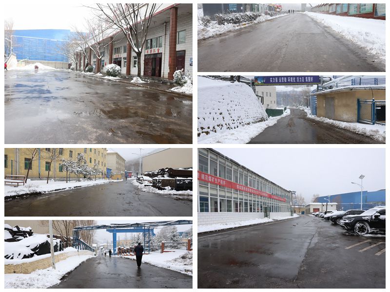 雪后雖然處處是美景,但也給職工出行帶來堵多不便。為了消除積雪帶來的不便和安全隱患,在崗職工自發(fā)拿起鐵鍬、掃帚,清掃礦內道路冰雪。