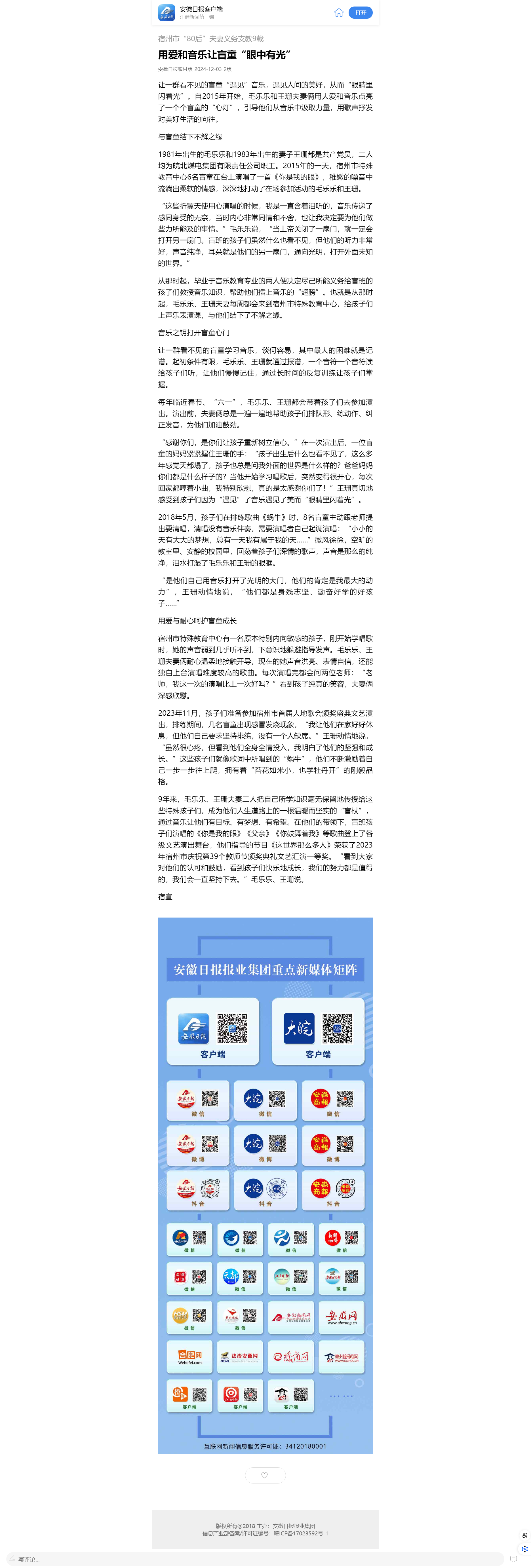 12月3日安徽日?qǐng)?bào)客戶(hù)端:用愛(ài)和音樂(lè)讓盲童“眼中有光”