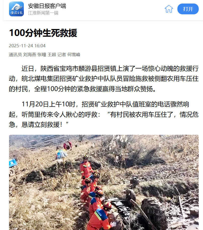 11月24日安徽日?qǐng)?bào)客戶(hù)端:100分鐘生死救援