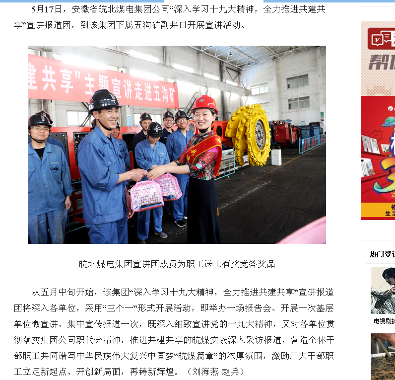 5月23日人民網(wǎng):皖北煤電:開展集中宣講 推進(jìn)共建共享